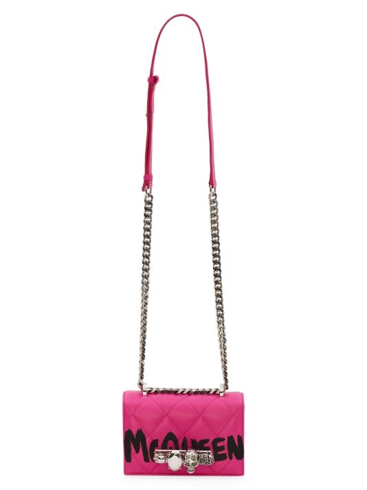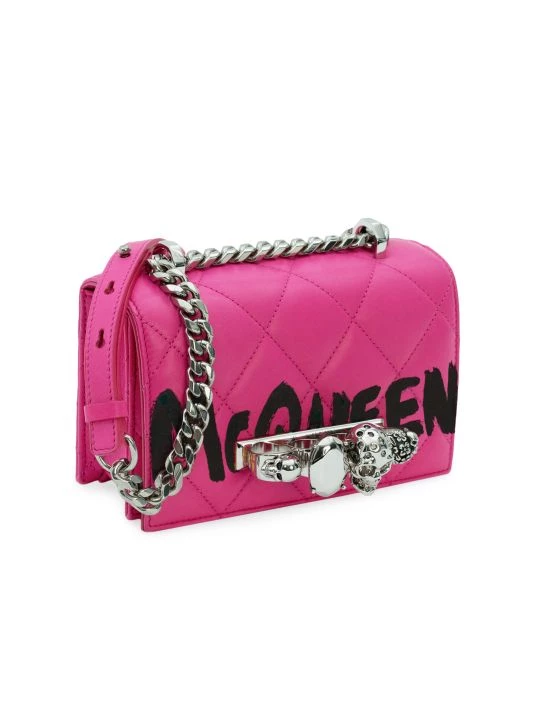 Adorned with signature four-finger skull hardware, this quilted nylon crossbody bag features a contrast graffiti-style logo across the front.