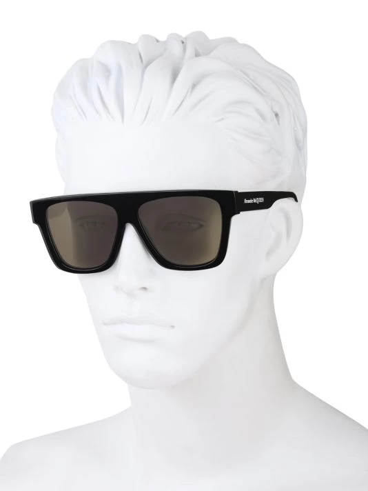 From the Romance Collection. Modern sunglasses flaunt signature logo at temple with a flat top rectangular silhouette.