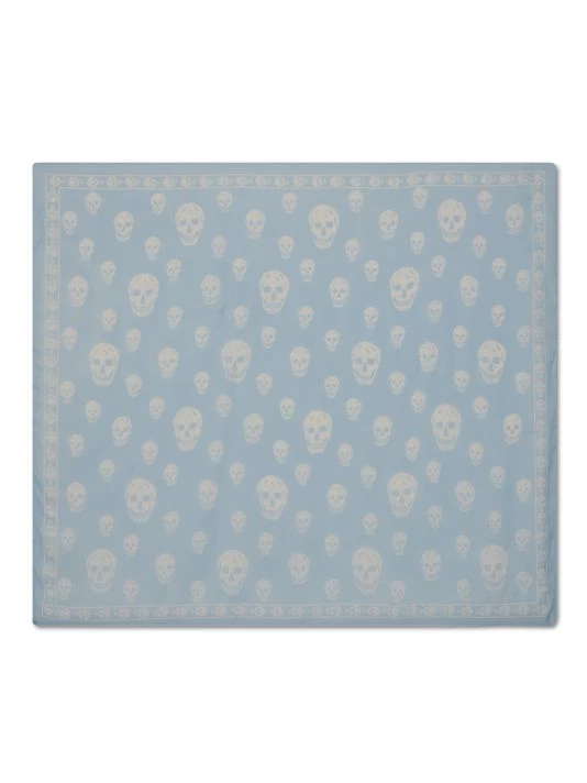 Signature skull print defines this essential silk-blend scarf with textured fringe trim.