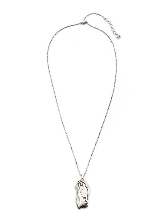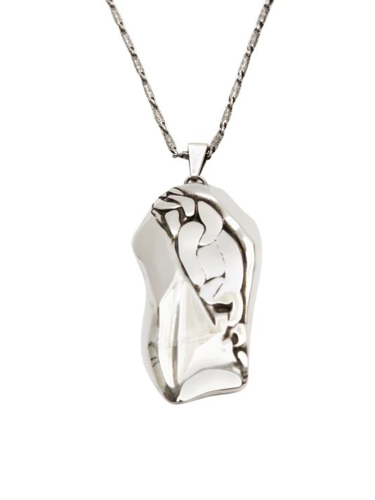 Crafted of silver-plated metal, Alexander McQueen’s necklace features a bold crushed-chain pendant.