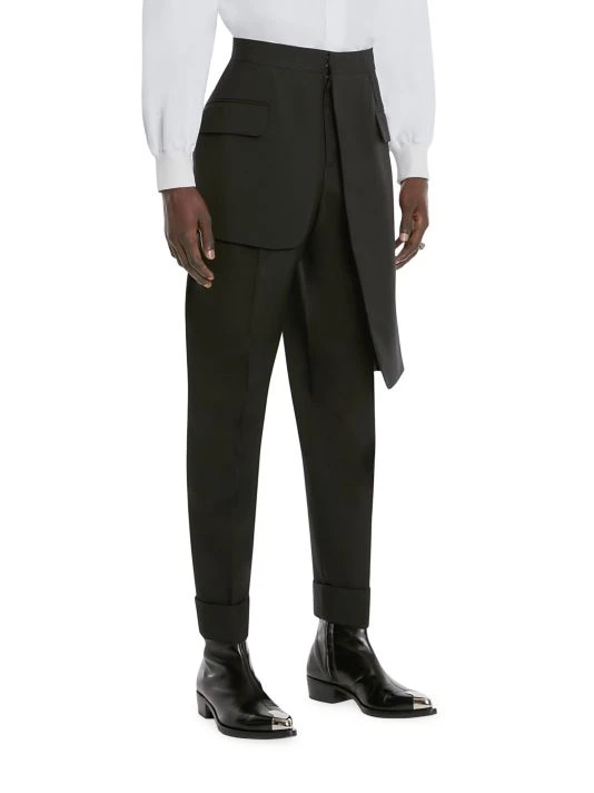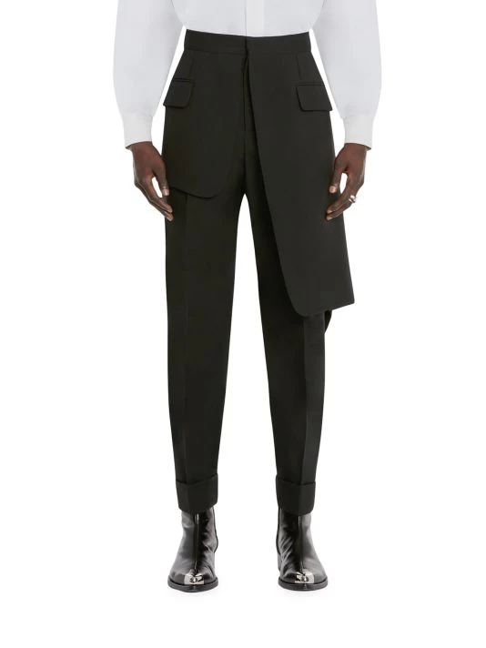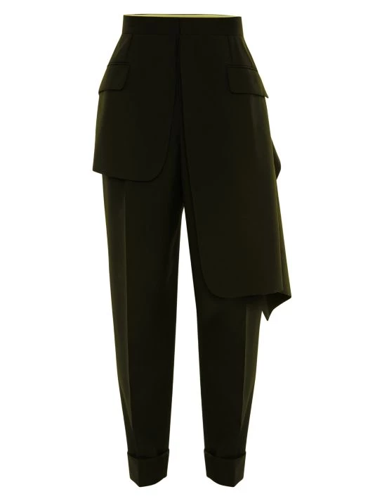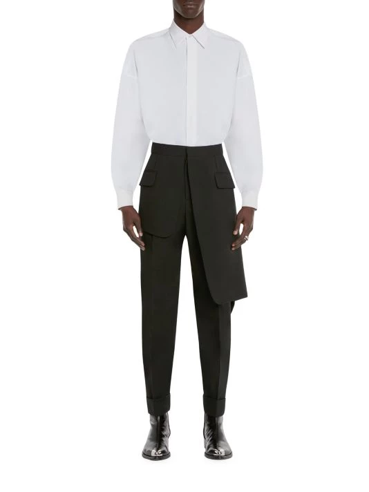 Made in Italy, Alexander McQueen’s elegant trousers flaunt a side drape and a cropped design at the ankle.
