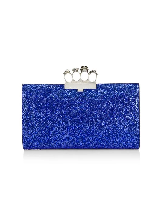 Alexander McQueen’s crystal-embellished pouch is topped with a signature skull knuckle ring.