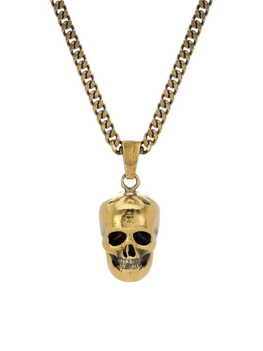 The antique goldtone necklace features the signature skull charm in an antiqued goldtone finish.