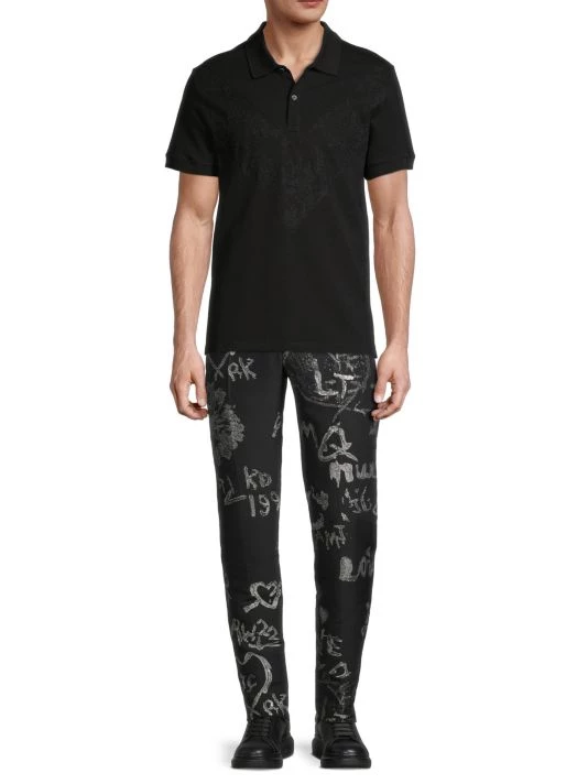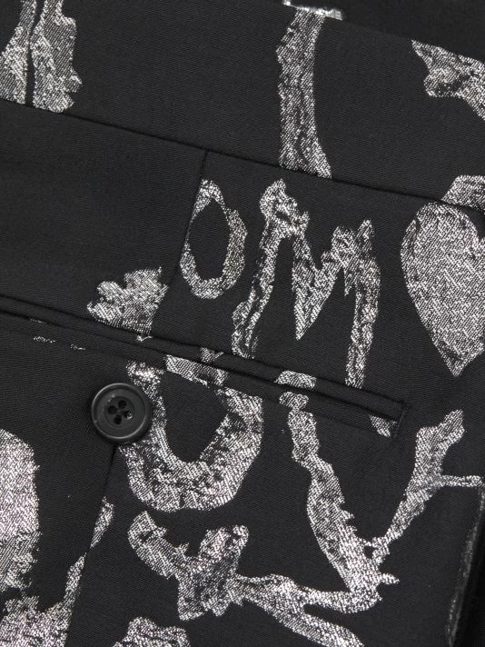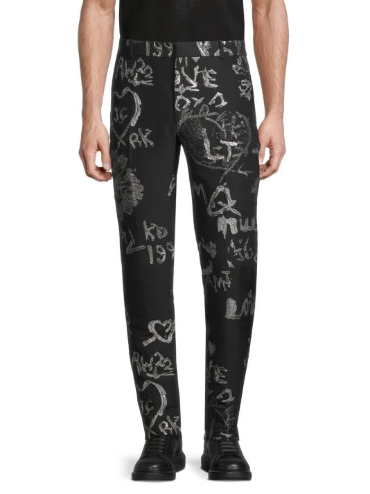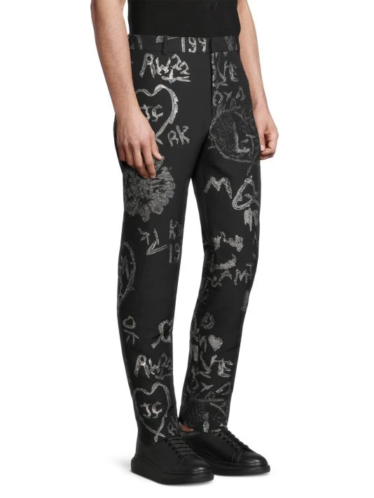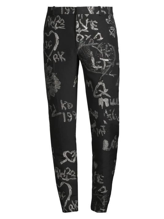 Cut for a slim fit, these wool-blend trousers feature a metallicized doodle design.