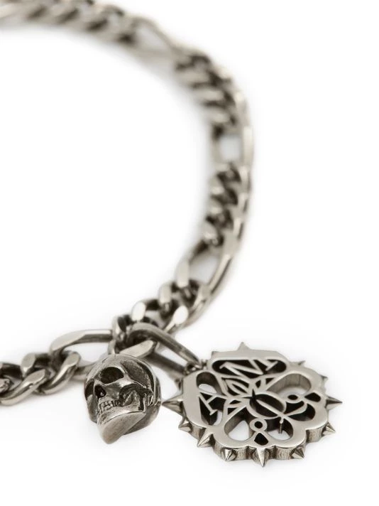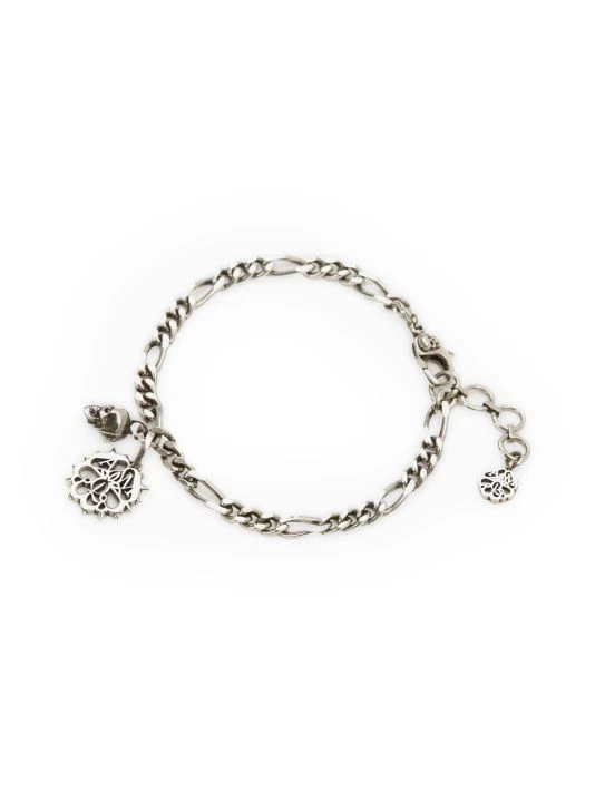 Straying from rebellious roots and offering a more romantic line, this collection was inspired by the works of English poet and painter William Blake. This bracelet features a skull and branded seal charm.