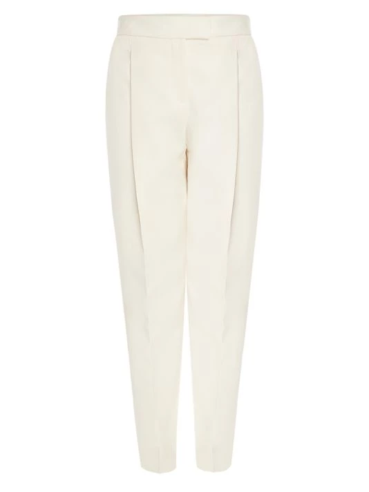 Crafted of luxe wool, these pleated trousers are cut in a tapered-leg silhouette.