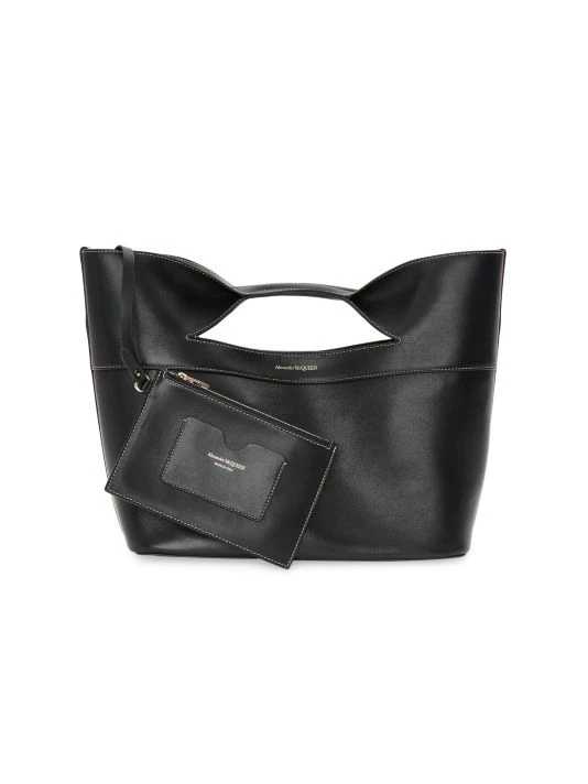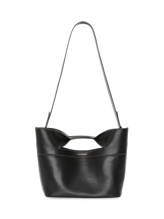 The Bow bag from Alexander McQueen is crafted of smooth leather with a removable shoulder strap.