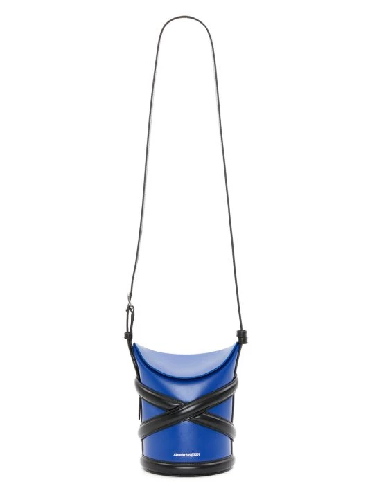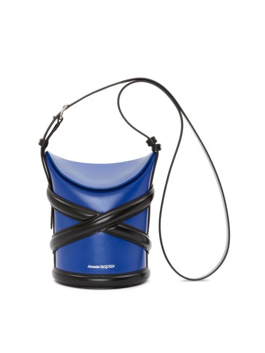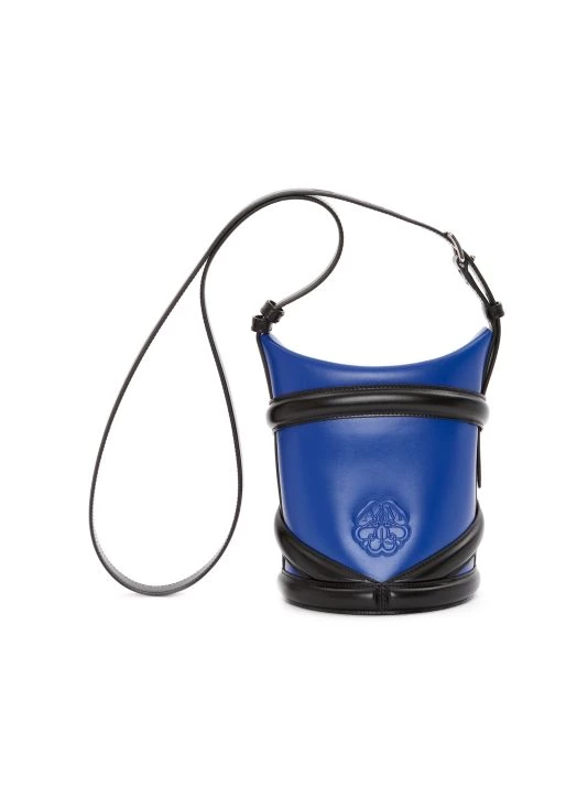 The Curve bag from Alexander McQueen is a structured leather bucket bag with contrasting wraparound trim.
