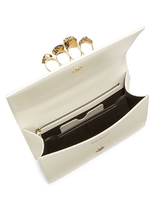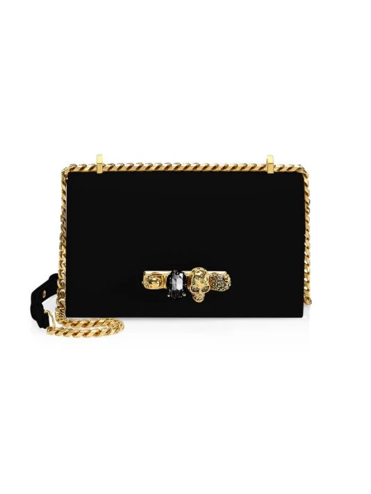 This structured smooth leather satchel is trimmed with delicate jewels.