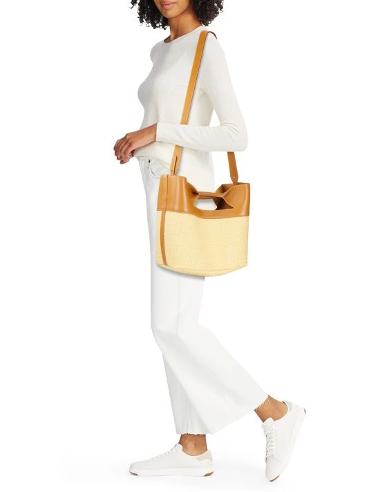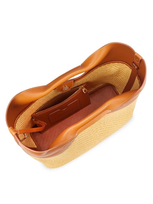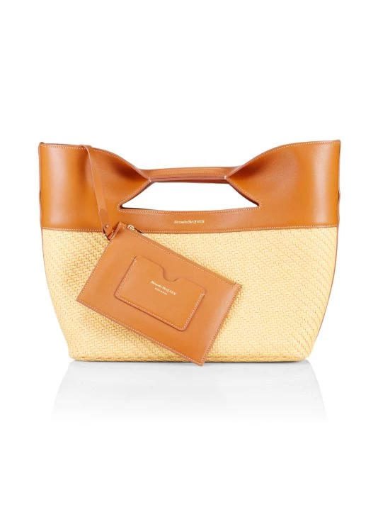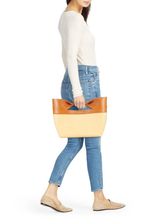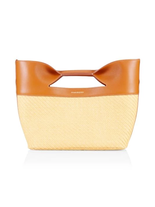 The Bow bag by Alexander McQueen is designed in a structured silhouette of raffia-effect cotton and smooth leather. Made in Italy, this piece is finished with a signature foiled logo.