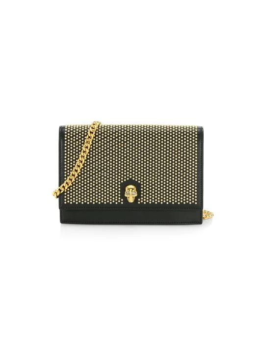 Speckled throughout with studs, this chain shoulder strap flaunts a skull detail.