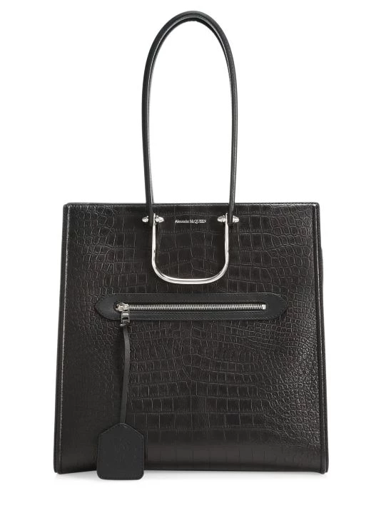 Featuring a chic croc-embossed finish and polished hardware, this roomy tote is rendered of rich leather.
