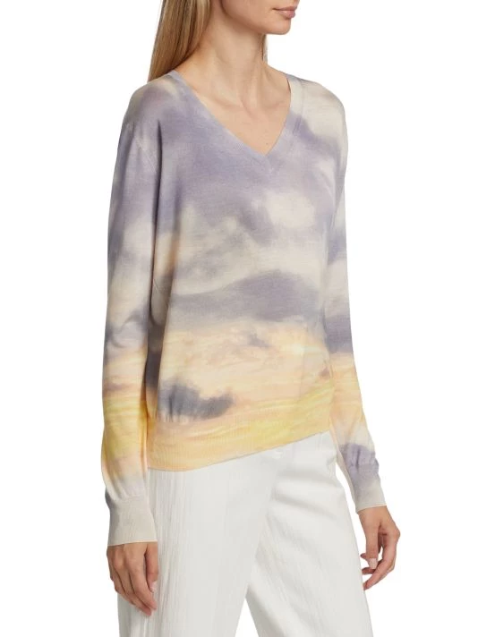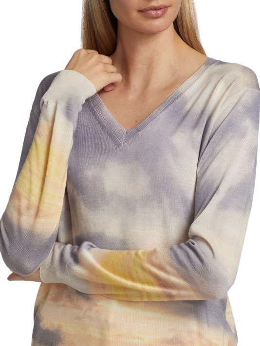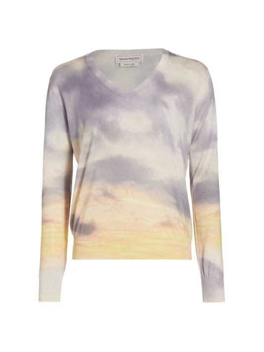 Crafted of wool-silk, this Alexander McQueen sweater is cut with a sharp V-neck and tie-dye print.