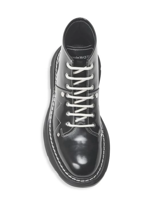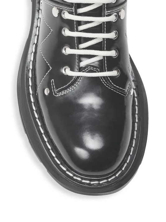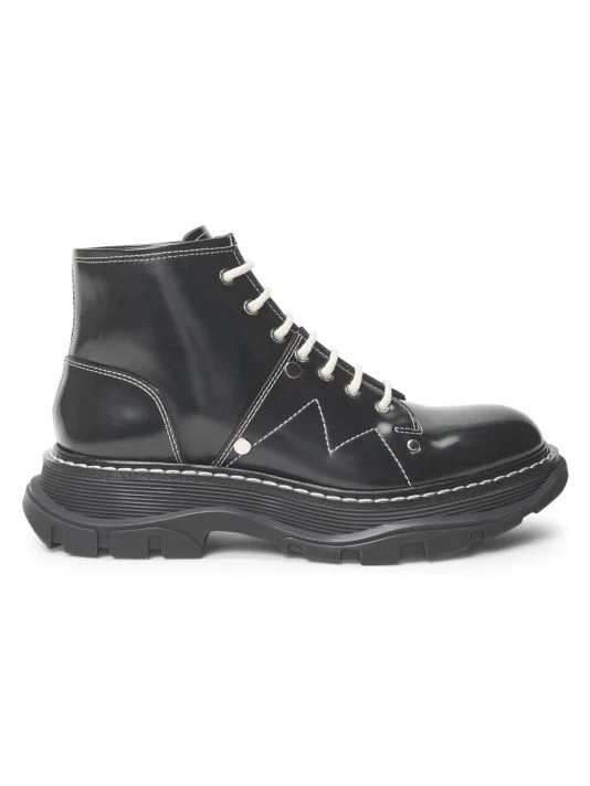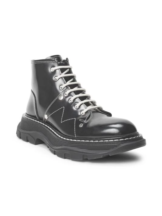 Cool contrast stitching highlights these chunky-soled combat boots.
