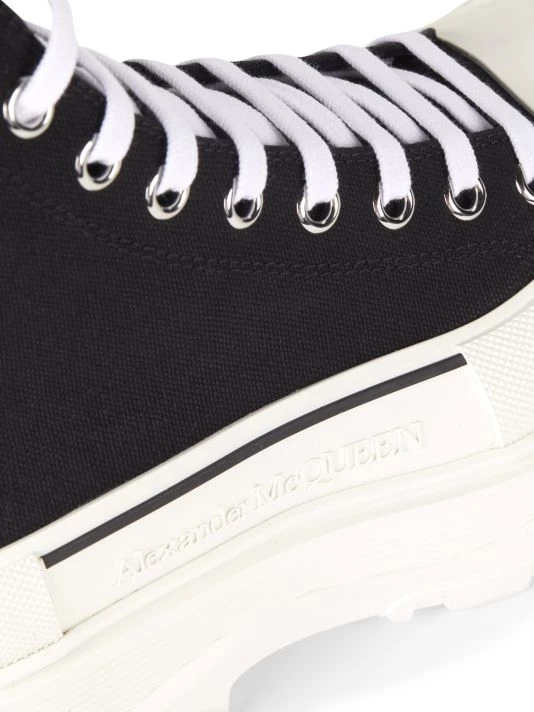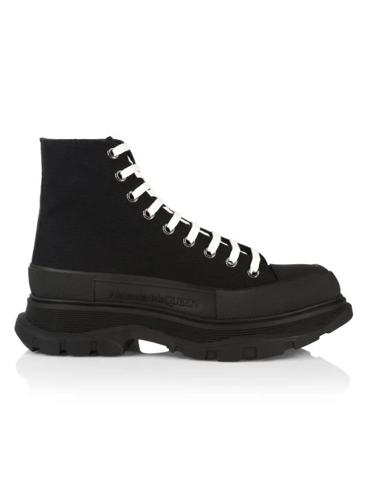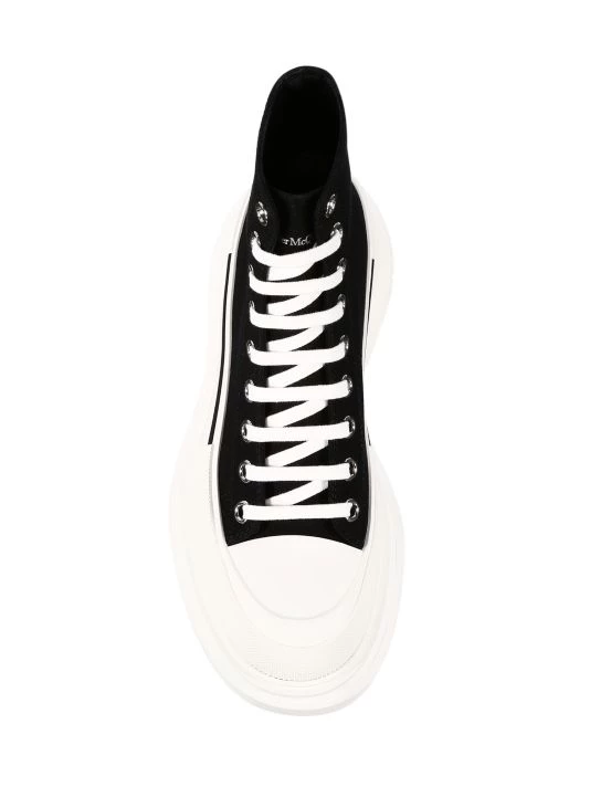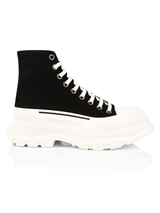 Ultra-sporty high-top canvas sneakers atop a chunky platform lug sole.
