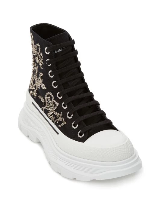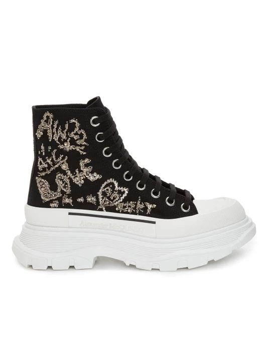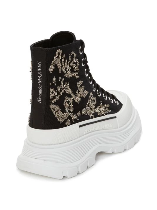 Alexander McQueen’s Tread Slick boots are elevated with a lugged sole for a rugged utilitarian look. Showcasing a signature logo at the back, this Italian-made pair is decorated with sparkling beads.
