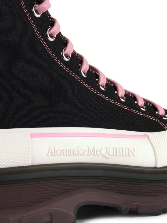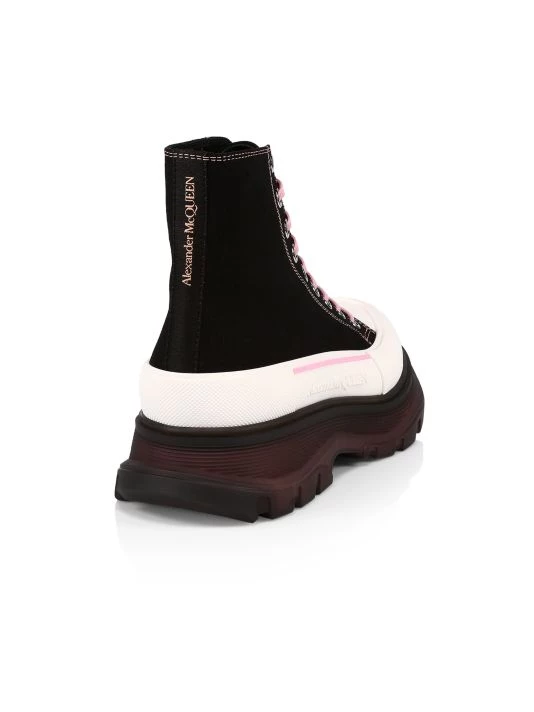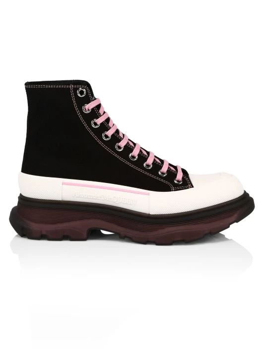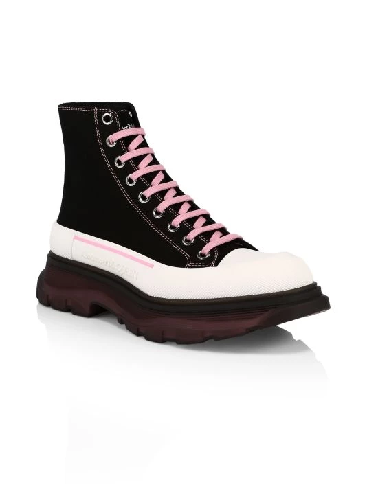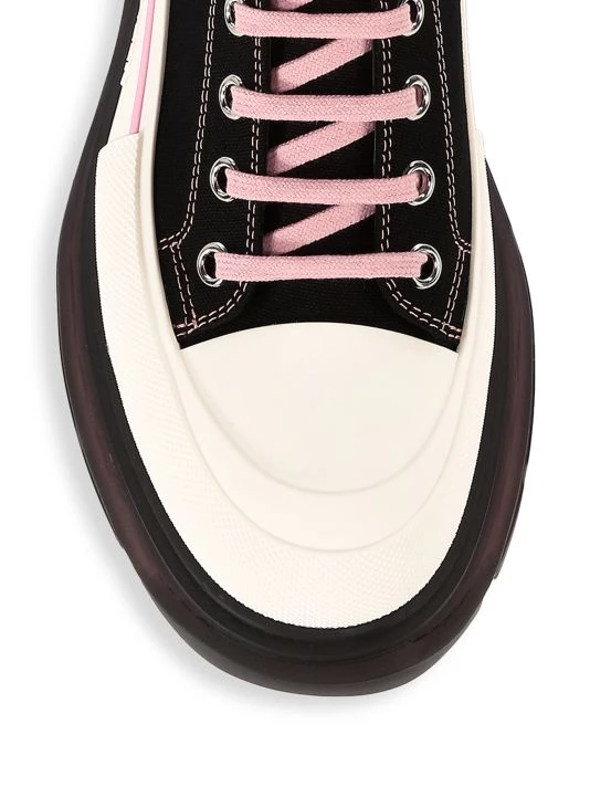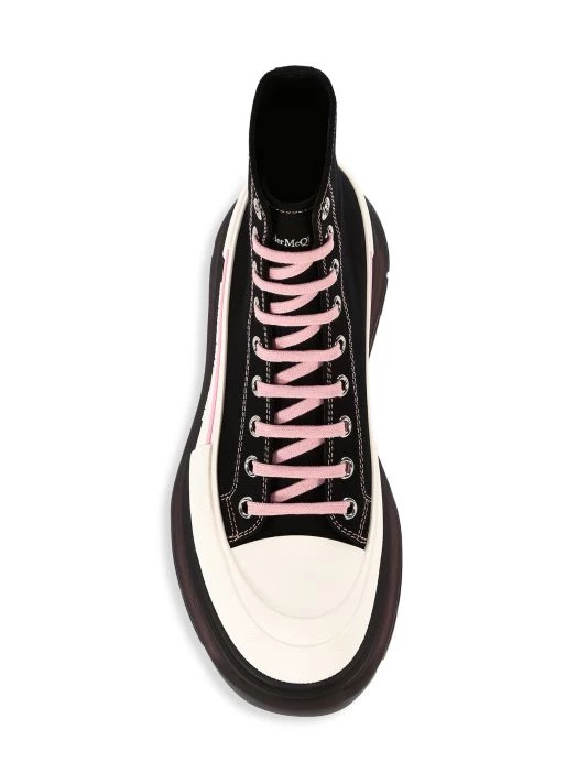 High-top sneakers in a sleek platform design feature contrasting laces.