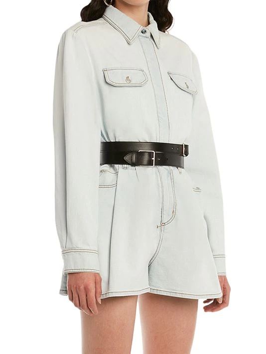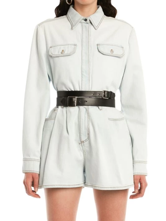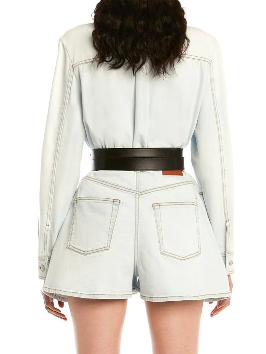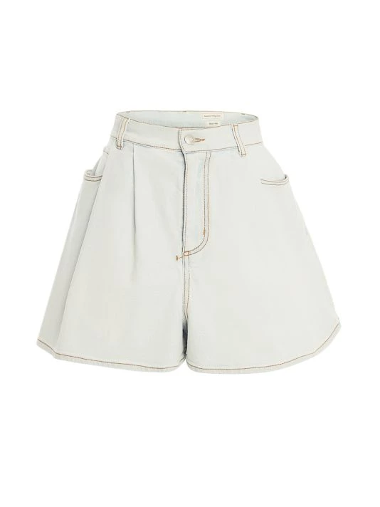 Cut in a wide-leg silhouette, these denim shorts are enhanced with contrast topstitching and asymmetric five-pocket styling.