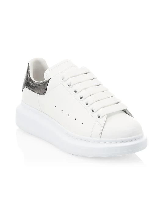Metallic patches lend colorblock accents to these sleek leather sneakers.