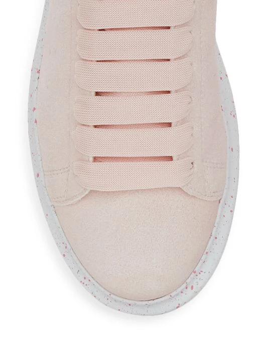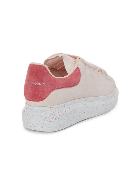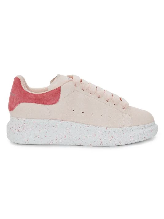 A perennial favorite, Alexander McQueen’s signature oversized sneakers are elevated by a splattered chunky sole. This instantly recognizable pair is crafted of colorblocked suede with a metallic logo at the counters.