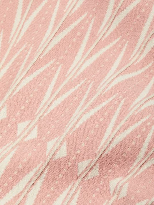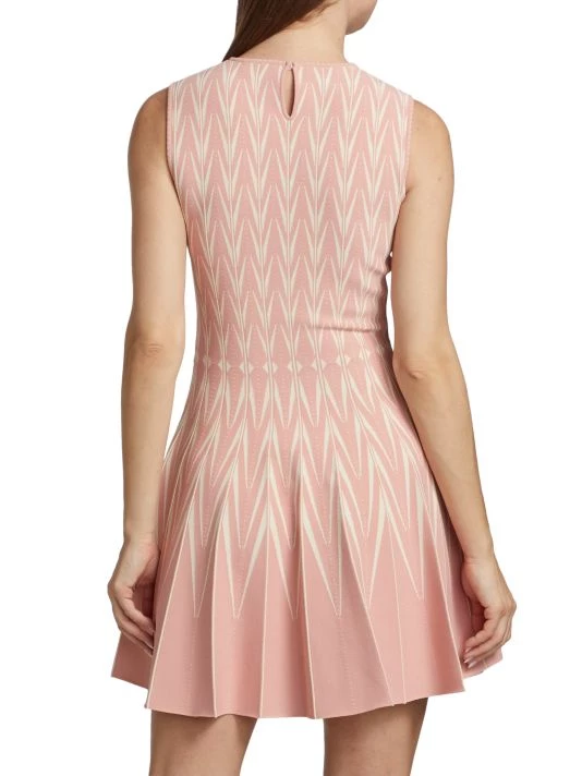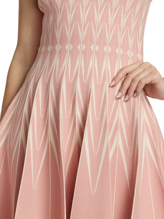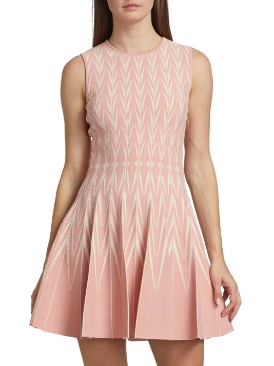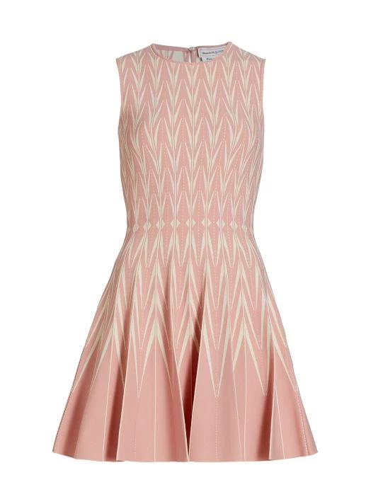 Cut in a fit-and-flare silhouette, Alexander McQueen’s sleeveless minidress boasts intricate pointelle knitting and contrast zigzag patterning.