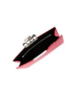 Alexander McQueen Skull Four-Ring Clear Box Clutch Dark Coral