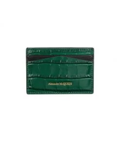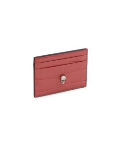 Alexander McQueen Skull Croc-Embossed Leather Card Holder Deep Red