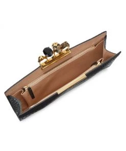Alexander McQueen Skull Four-Ring Croc-Embossed Leather Flat Pouch Black
