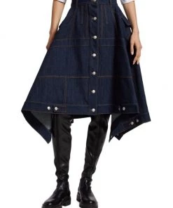 Alexander McQueen Denim Flared Midi-Skirt